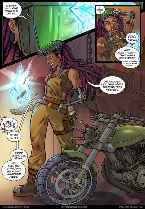 I make @RetroBladeComic, a science fantasy comic about time travelling dorks trying to fix the universe: https://t.co/qUOl2hXZ8A 🏍️