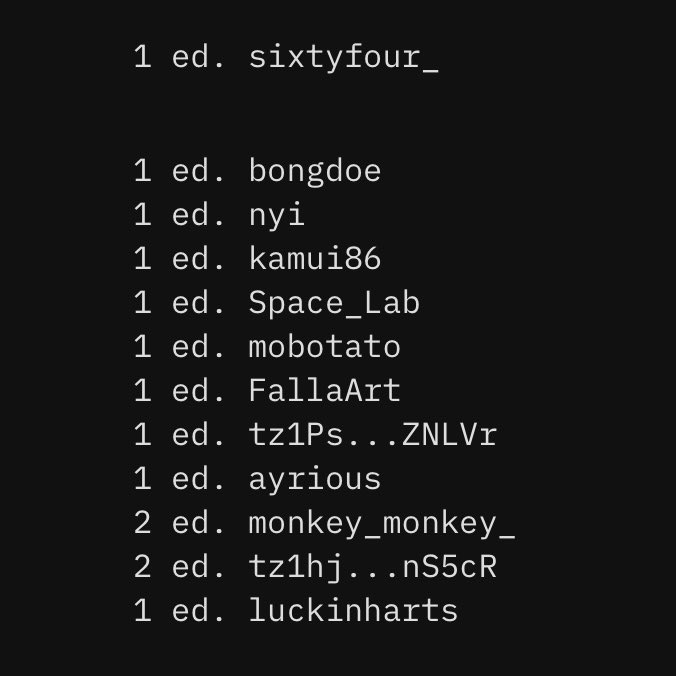 Thank you so much to the #nftcollector below! Big hug for collecting and support RT and like, really appreciate 💛💛💛💛