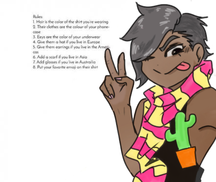 One of the rules was to colour the clothes according to my phone case but my phone case is transparent... so I gave him a translucent tank top instead. Anyways you can see how I lazily I did this since I should've been asleep 3 hours ago.