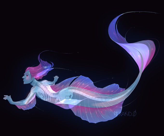 I'm not planning to do Mermay but I always thought that the Larval Leaf Scorpionfish looked extremely interesting. I love translucent and bioluminescent fish. So here's a merman!