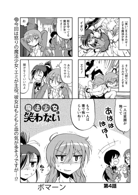 第4話(前半3P)。 レトロゲームを愛し怒りをエネルギーとする魔法少女、エミの怒りが炸裂する!(…のか?) #魔法少女は笑わない