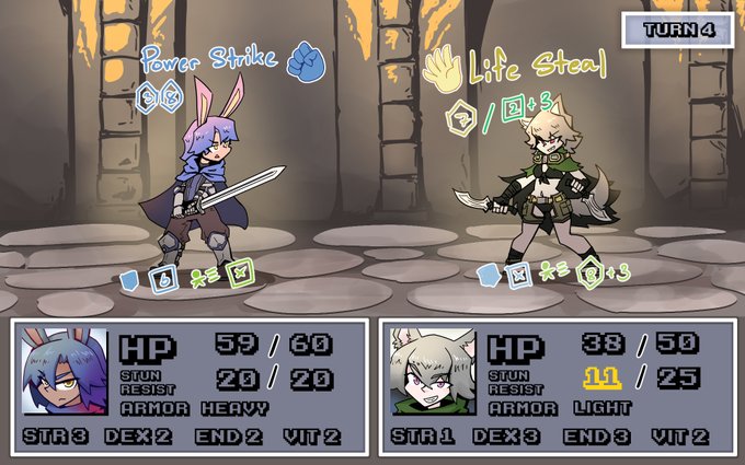 🐺Wolf Girl has an advantage, deals 10 stun damage, and heals 5 HP.