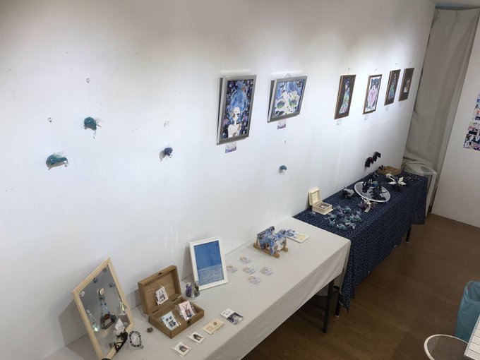 イラスト、絵画、天然石アクセサリー、雑貨、ドールなど多彩な作品が並びました。プライス表示があるものはお買い上げいただけます。
