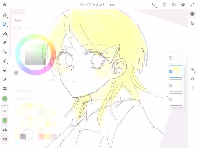 主線なし系のイラストが描きたくて四苦八苦😓AdobeFrescoマスクのやり方とかよく分からないや~💦