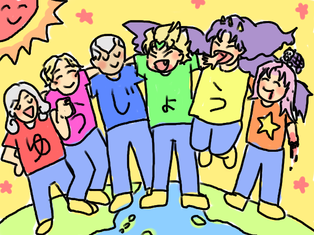 ♪肩を~組んで~くじけ~ないで~空を見上げよう~~♪ みんなそれぞれ助け合う(食事の意味で)小さなザ・ワールド! 《タグつける予定はありませんでしたがもったいないと言われ調子に乗りました》 #JOJO版深夜の真剣お絵描き60分一本勝負