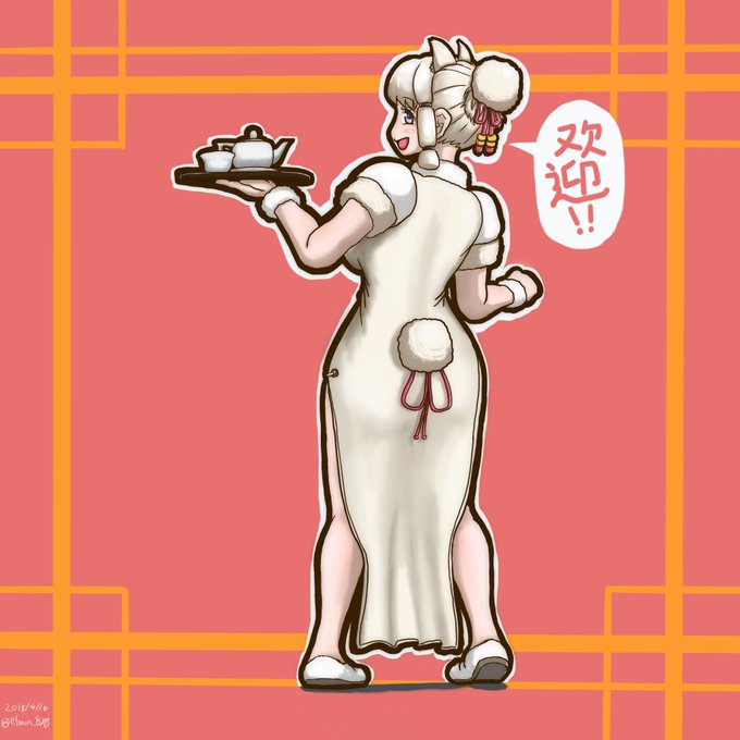 流行りのチャイナ服をアルパカさんに着せてみた。プーアル茶とか入れてくれそう。 #けものフレンズ
