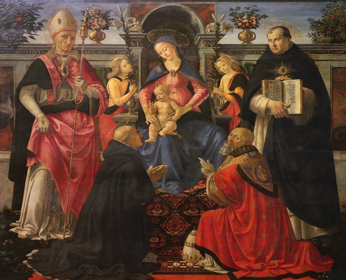 ✔️Madonna in trono con due angeli e i Santi Dionigi, Domenico, Clemente papa, Tommaso d'Aquino 1480-85 ca