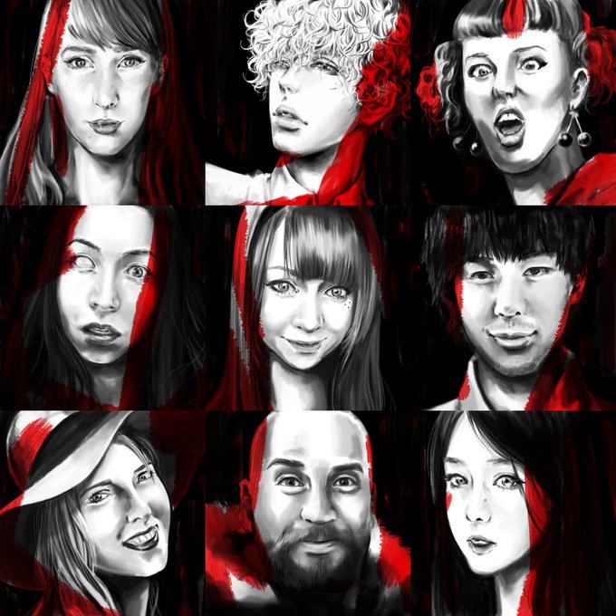 担当したイントロの似顔絵9人分(^-^)公開前日に急遽描き下ろし。https://t.co/1Sja53yFdi #sebastianoserafini #erinatakeichi #20161027 #YTHS #art #illustration #Fashionable