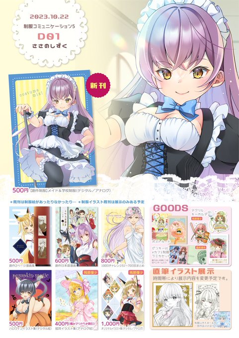 新刊はメイド服+創作学校制服イラスト本です。