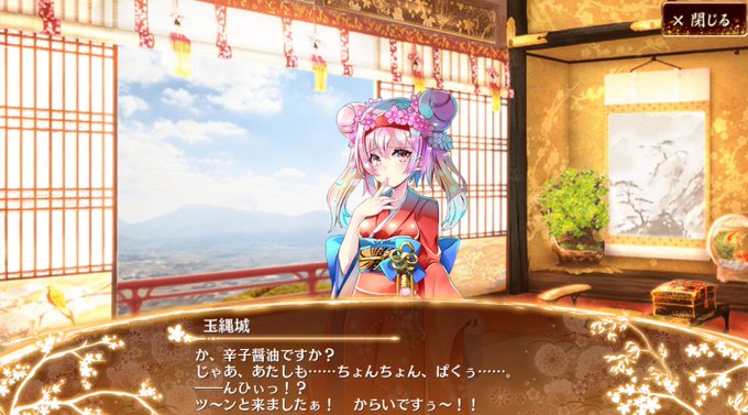 お目当ての玉縄城ちゃんもお迎え!カワイイヤッター!お団子ヘア可愛いし元気で可愛いし贈り物イベでの↓のボイスがほんと可愛くてほっちゃーん! ほ、ほーっ、ホアアーッ!! ホアーッ!!