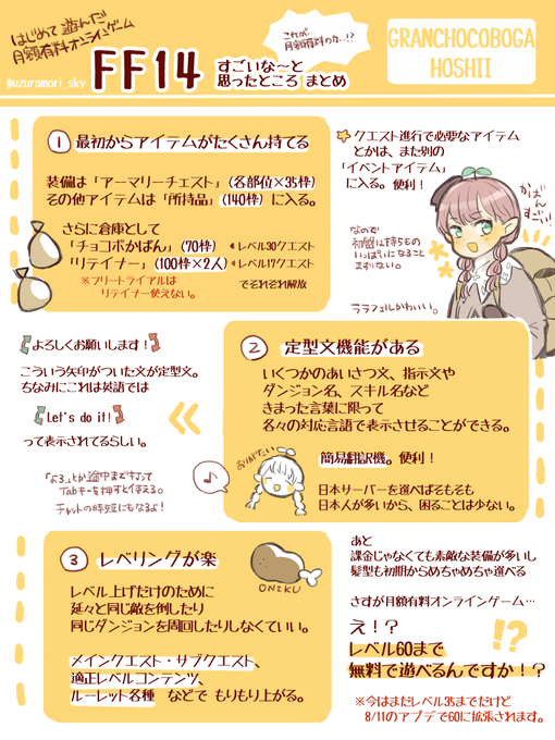 Sky垢で大変申し訳ないんですが、折角作ったので放流させてください…!🙏💦 今まで基本プレイ無料オンラインゲームしか遊んだことがなかった私がFF14で感動したことをまとめたプレゼンもどきとスクショです🙌 無料で遊べる「フリートライアル」がありますので、もしご興味ある方いらっしゃれば~!