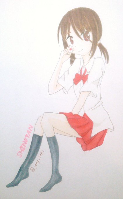 黒石みなもさんは『白築慕が阿知賀女子学院の夏服を着ている』絵を描きましょう! https://t.co/rxBRRCir29 しのたんイェイ〜🎉5巻帯のお下げめちゃ可愛かったです♡色塗り失敗したけど阿知賀1巻のシズの夏服Verです