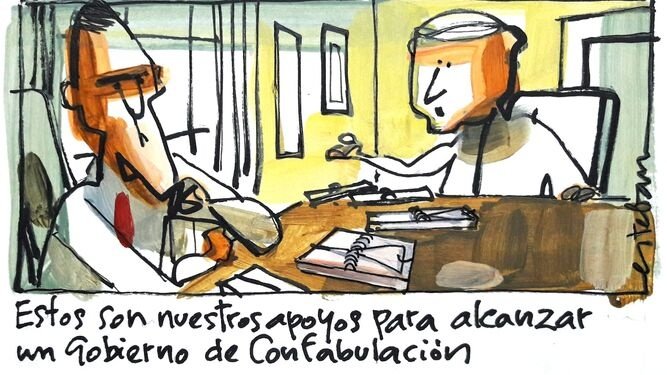 En #lenguaje del #humor de esta semana todavía hubo hueco para recién llegadas al Diccionario #DLE @MikiyDuarte, neología satírica en el "Gobierno de confabulación" de Esteban @diariosevilla o paremia gráfica de @javikatura. Y #PedroSanchez al copo
