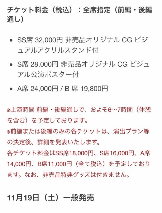 SS席限定で付くアクリルスタンドが素敵だと思い、詳しく調べてみたら中々の料金。