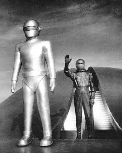『地球の静止する日』(1951)冷戦下映画の含意する政治的主張はさておき、地球人になりすましてパトリシア・ニールの下宿に現れる場面やEVで真相を告げる場面にぞくぞくするのは慢性ノワール病の所為😆他にも今ではとんと見られぬパニック描写の的確にして効率的な処理も👍監督ワイズのワイズな演出👏