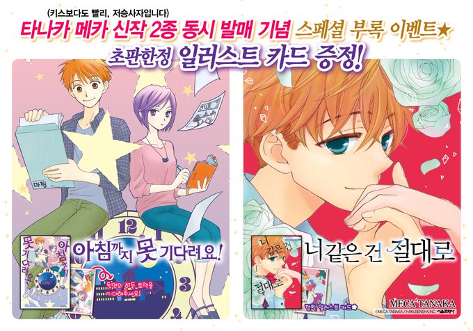 [공지] <키스보다도 빨리>, <저승사자입니다>의 '타나카 메카' 작가님의 신작 2종 동시발행 기념 특별 부록 이벤트 진행 중!