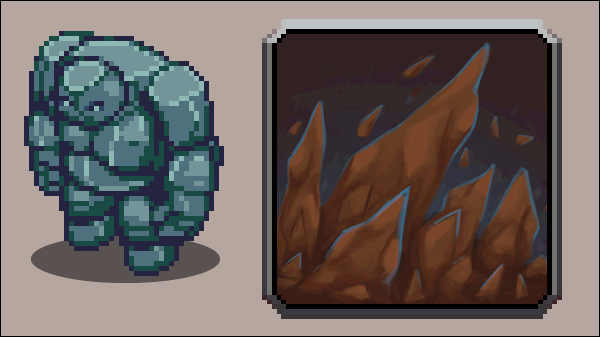 New skill icon: golem's Stalagmite! A (very) long range magical attack that creates a stalagmite at the target's location, almost impaling it! #fiotactics #pixelart #isometric #tactics #gamedev #indiegame (skill art by @RyanKamos)