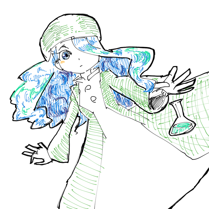 暇つぶしで自画像描いてた ふにゃふにゃの絵になったから色付けてごまかす #迫真SLお絵描き部