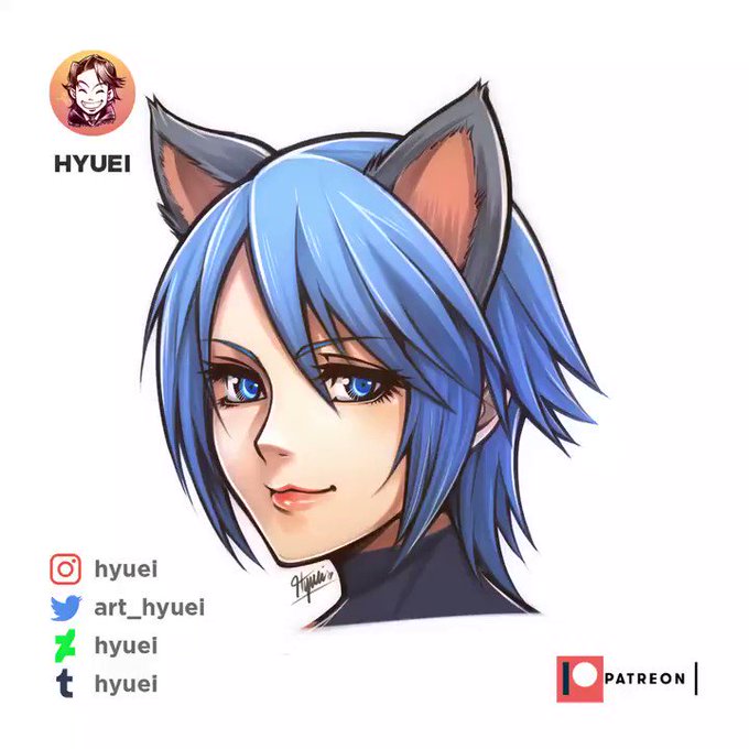 Another commission finished! Aqua with kitty ears 😄