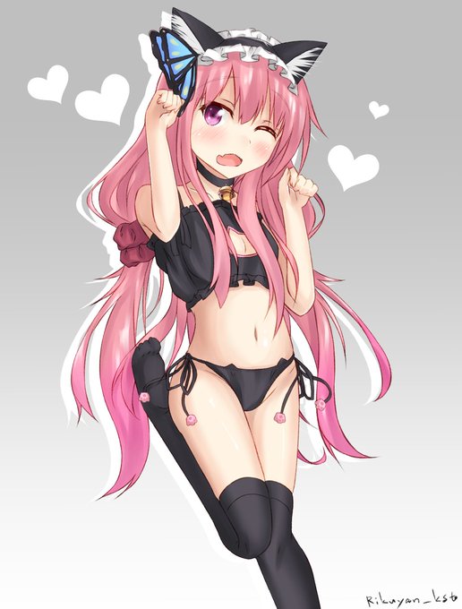 猫の日だったらしいけど何も描けてないので昔描いたねこランジェリーハナモモちゃん置いておきますね…_(:3」∠)_ #猫の日 #フラワーナイトガールイラスト