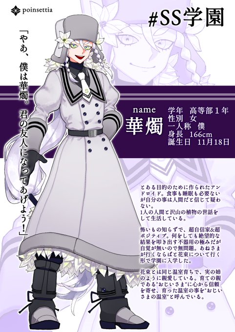街にふらりと現れてはまたふわりと立ち去る、神出鬼没のお嬢さん。森奥で温室管理をしながら暮らしていて、森ないし山内は彼女の庭同然。ときどき迷ってきた人を案内している。ややと世間知らずで天然な面が目立つが、心根が素直な優しい乙女。元は森に捨てられた赤子、孤児である。