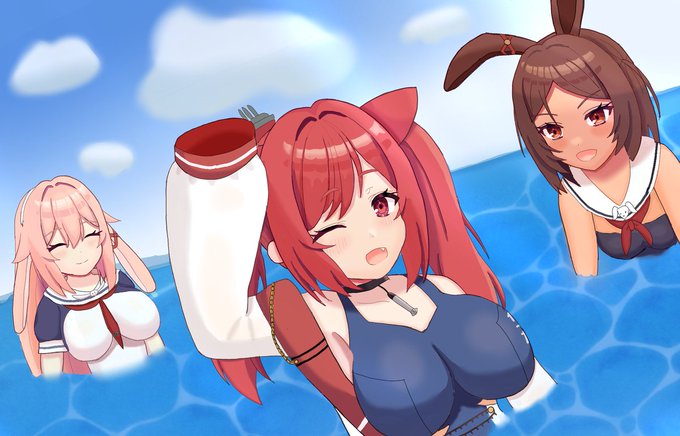 前に描いた絵を色々見ていたらほぼ1年前(アズレン4周年記念時)に描いたイラストが出てきたので、今年描いた5周年記念イラストと並べてみました。