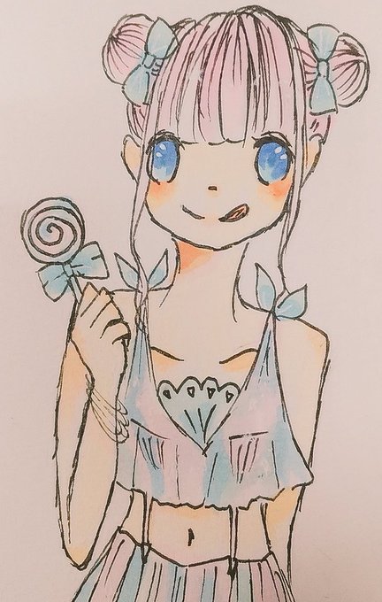 目の色をピンク🍑か、水色💎かで悩んで結局水色になりました。