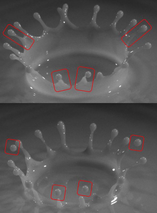 特に難しいのが「角の先に球」という構造を生み出すこと。うまくいった場合は、王冠が開き切った1/250秒後に角から球が離れて飛んでいくのが観察される。