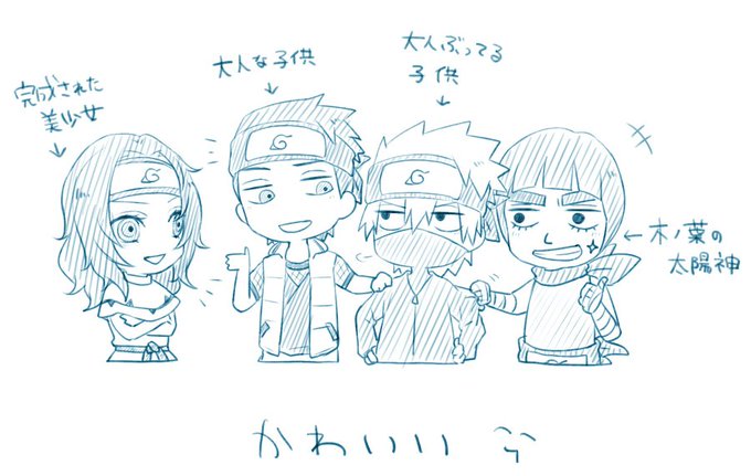 大人の上忍師組もめっちゃ好きなんですけどいつも描くのが子供時代なのは仔アス紅の容姿が好みドンピシャだからです、仔ガイは髪切る前の姿も好きかわいい