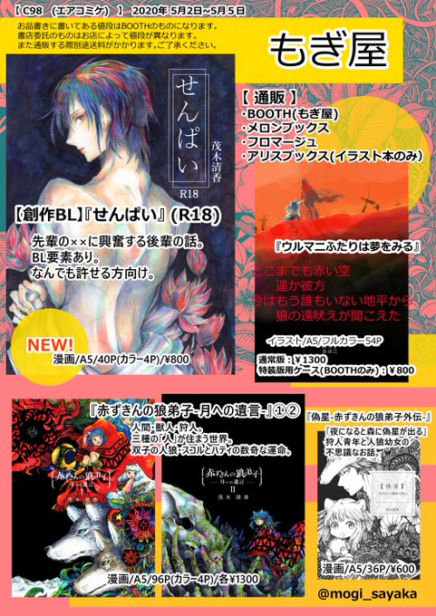 C98で頒布予定だった新作グッズと新刊の予約がメロンブックスさんにて始まりました🤗新刊は特典付きです~