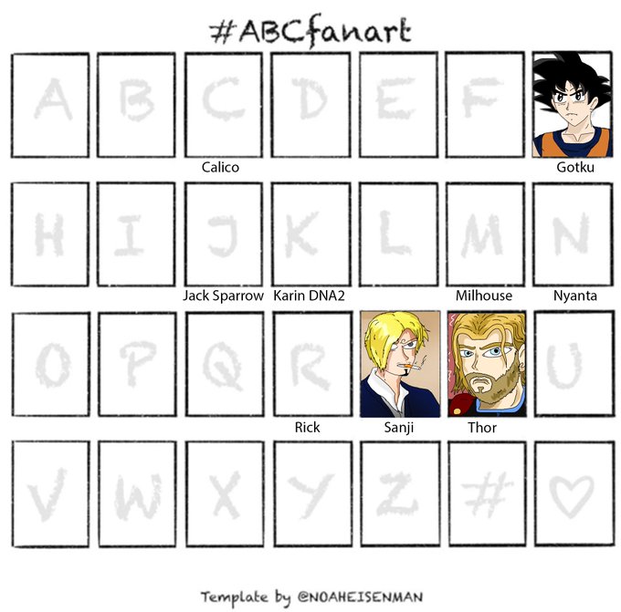 Sigue abiertas las letras que no tienen na, así que el que quiera proponer algo, pos ale xD. Eso sí, dando prioridad a personajes que conozca xDDD. Mañana voy haciendo más.