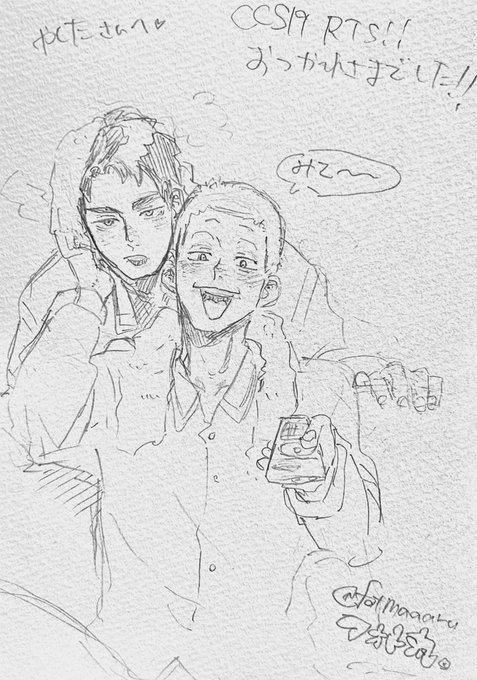 寝ない子ハンジさんと、寝ない子を連れてっちゃう兵長と、髪の毛はねまくってるピークちゃん。