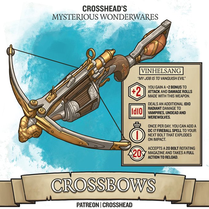 Van Helsing meets Strahd in my 5th edition rendition of the heavy repeater crossbow that was featured in the 2004 movie with @RealHughJackman. #dnd #ttrpg #tabletop #wotc