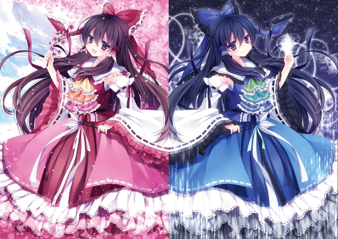 #博麗霊夢 #霊夢 #巫女 霊夢ちゃん投下! お賽銭入れたくなってしまったらRT!! 紅と蒼の霊夢さん(*‘ω‘ *)