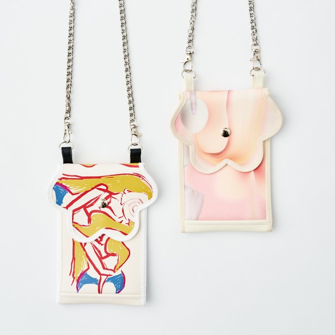 ウェーブが特徴的な「mardi matin」にMOTTYさんが得意とする中毒性のあるアートを組み合わせたバッグとiPhoneホルダーがラインナップ。