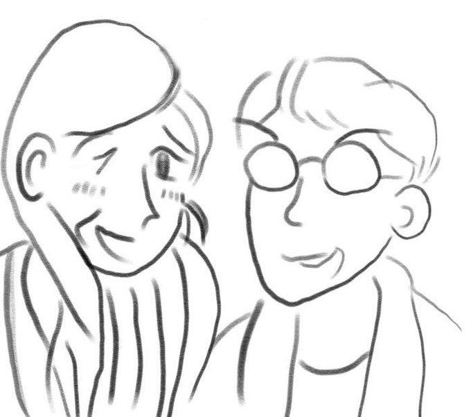 夫がイラストをあげている…彼の描く人の表情、とても好きなのです。過去作とともにあげ。左のサンさんと円太郎さんの目とメガネの部分、「1 0 0 0」になっているんですよ。彼に「気がつく?」って聞かれたから、「全く気づかなかった」って答えました😆💦 でも素敵な表情だし、わからなくても良しw👍