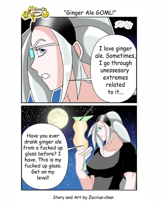 Miora loves ginger ale...even when drinking out of a fucked up glass...lol