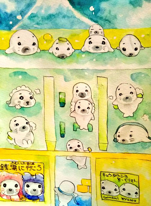 ゴマの湯③上段左からManeKinekoさん、はにゃさん、タロさん、ゴマホビーさん、中段ごまおちゃん、ゆきさん、ガッチリコさん、ぽめまろさん、ちょりんさん、みかんさん、下段ぺりかさん、キャッキャちゃん、そしてサロメさんのごまみちゃん