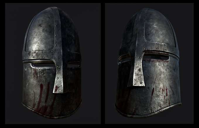 Medieval helmet. Modeling @AutodeskEsp and texturing @Allegorithmic #substancepainter #3dmodeling #texture #videogames #helmet
