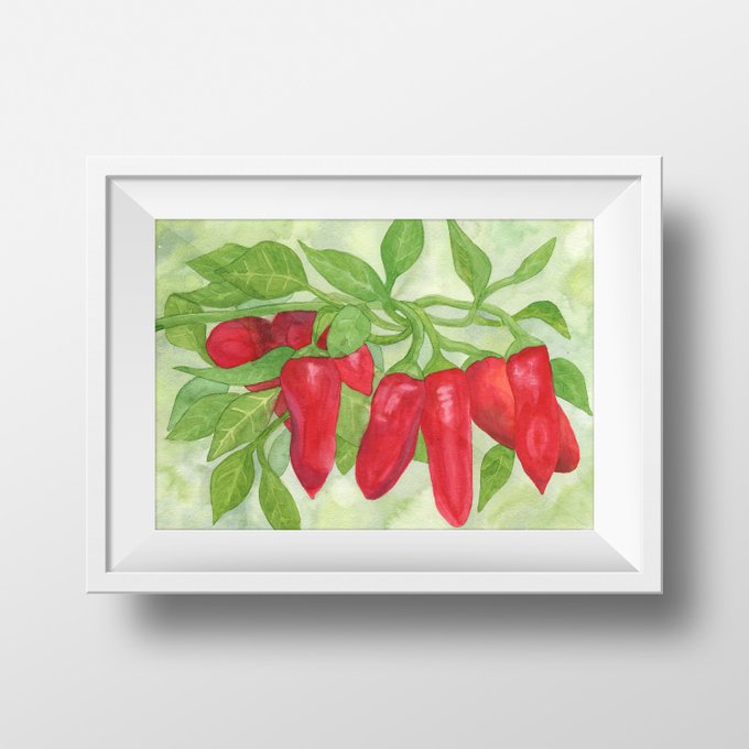 Thanks for the kind words! ★★★★★ "wonderful it looks great on my wall" marcy https://t.co/HbeRYO8h3y #etsy #red #green #fooddrink #watercolor #original #walldecor #colorful #watercolorart #chiliwatercolor