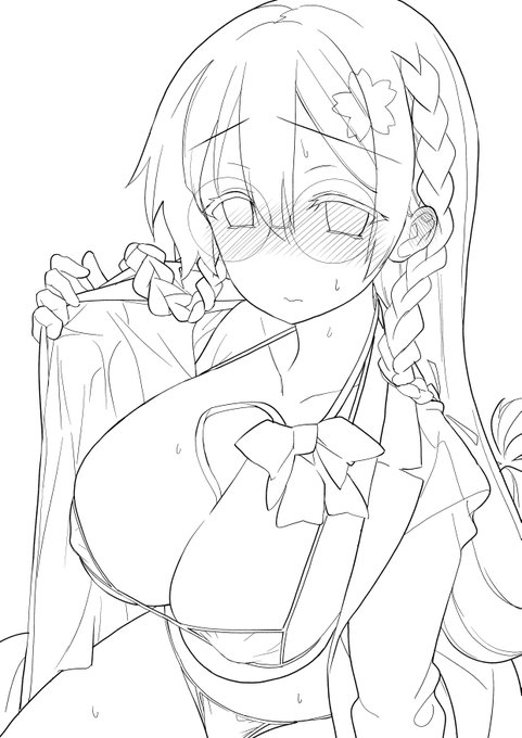 #いいおっぱいの日 らしいので便乗。モネさん一巻をとらのあなでお買い上げいただいた場合のオマケのクリアファイルのカラー原稿と線画です。