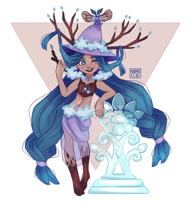 here's my OC Luna Elle, ice/plant witch, does plant ice sculptures. feel free to draw her! and tag me thank you🥺💖