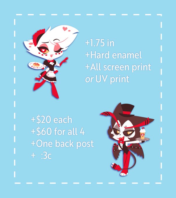So excited to share my Hazbin Maid Cafe set! I'm experimenting with an all screen/UV printed set so they're lineless! I'll open up pre-orders maybe next week! 2023 is the year of EXPERIMENTS #HazbinHotelFanart #hazbinhotel #alastor #angeldust #HazbinHotelHusk #HazbinHotelLucifer