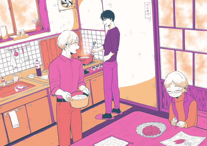 フォロワーさんからお題いただきました!(勘違いしてちょっと違う内容になってしまったんですが)下宿で料理をする火村・アリス・ばあちゃんです。ありがとうございました!