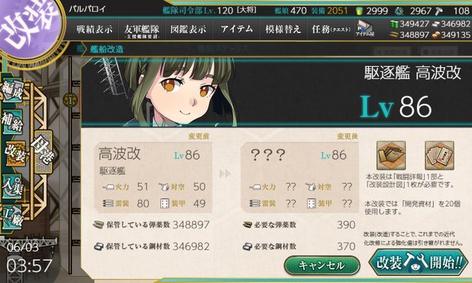 とりあえず高波1号を改二へ。