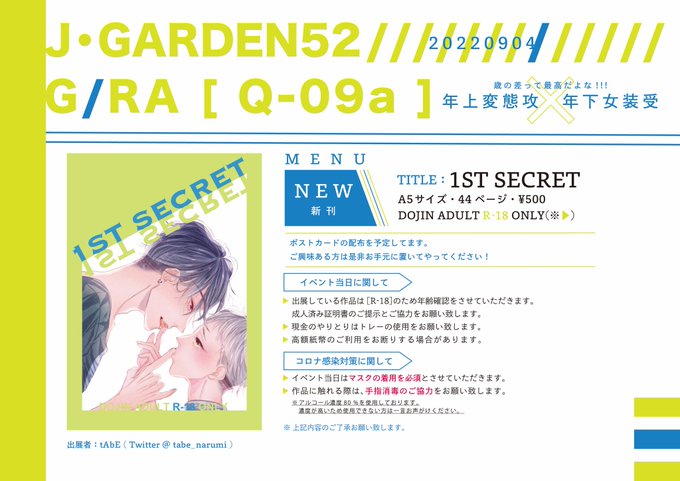 J.GARDENG52 9/4 お品書きと表紙絵☺︎