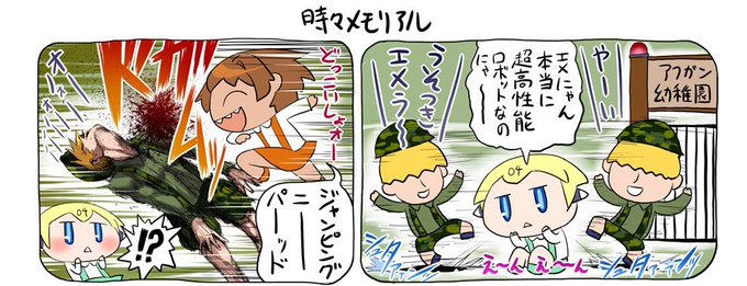 エメラ=ボンバーガール=お掃除=元戦闘用ロボ=[謎に包まれている時代]=手に負えないぐらい暴走していたかもしれない(故障)=幼少期=いじめられている所をオレンに助けられた。(出会い)