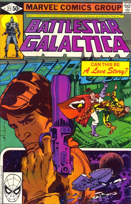 Contrairement à ce que semble montrer cette couverture du n°22 du #Marvel #BattlestarGalactica, ce n'est pas Apollo mais Jolly qui est le personnage principal de cette histoire où il s'infiltre incognito sur un vaisseau de la flotte.