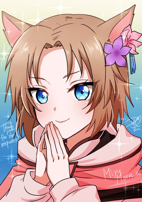 Ric.さんのコミッション「こんにちは。私はあなたの絵がとても好きです。私のFFXIVのキャラクターの絵をお願いしたいです。ポーズや表情はあなた次第です :D