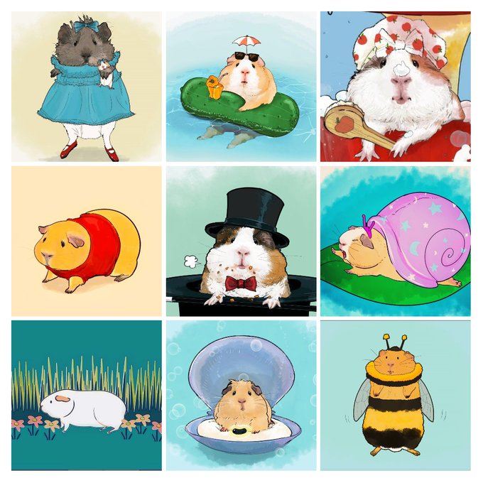 実際はこの他にもちょいちょい描いてはいるのですが、2022年4月もモルモット絵をたくさん描きました。